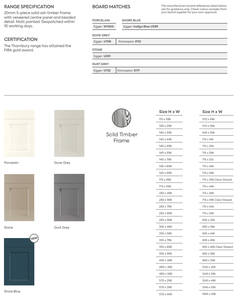 • The Thornbury range carry a 6 year warranty |